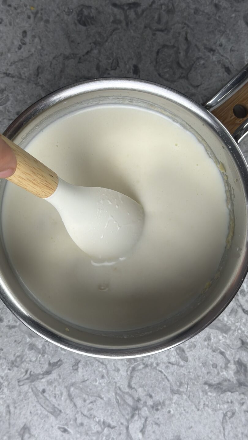Cuoci la besciamella fino a che non di addensa, ci vorranno circa 5 minuti.
