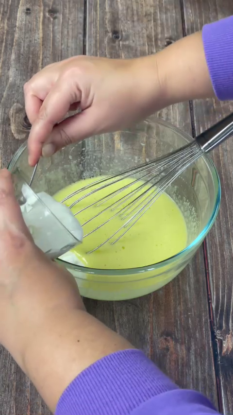 Metti nella ciotola anche lo yogurt: io ne ho usato uno bianco ma va bene anche aromatizzato alla vaniglia, al caffè o all’arancia.