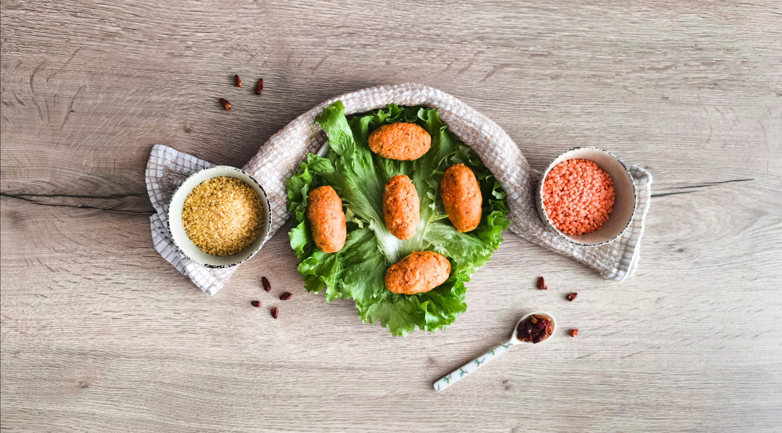 La particolarità di queste polpette risiede nel fatto che non vengono né fritte né cotte al forno ma l’impasto viene compattato a forma di polpette allungate e vengono mangiate così, tiepide o fredde, senza ulteriore cottura. La loro consistenza si ottiene grazie alla combinazione di lenticchie rosse e bulgur fine, che assorbe i liquidi e dà compattezza. Il risultato sono delle polpette morbide e facili da preparare.