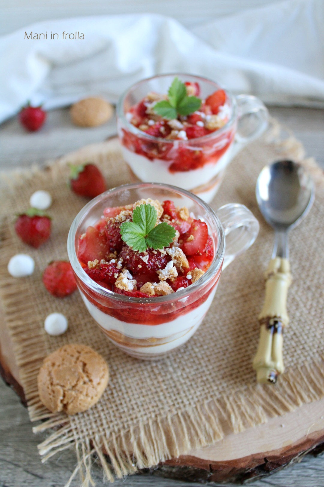 La combinazione della dolcezza delle fragole, la cremosità acidula dello yogurt e la croccantezza degli amaretti crea un equilibrio di sapori e consistenze che conquista al primo assaggio.