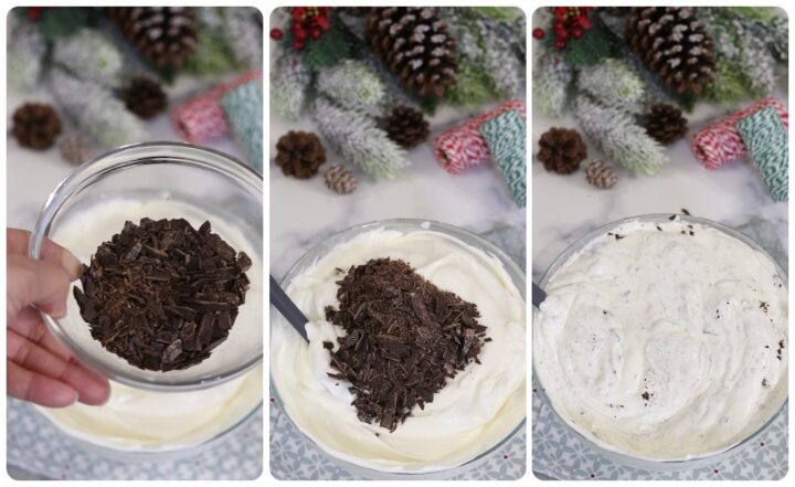 Dovrete ottenere una crema vellutata. Per finire aggiungere le gocce di cioccolato.