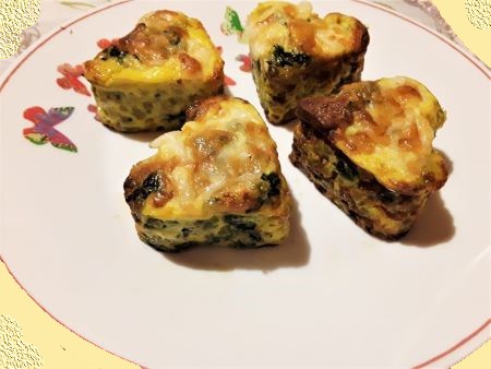 4 Unire le verdure ben scolate al composto di uova, mescolare e versare negli appositi stampi ( se siete sprovvisti di uno stampo in silicone, cospargere un poco di pangrattato alla base).