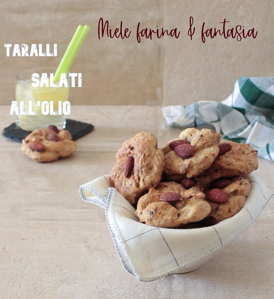 Ho rivisitato la ricetta dei classici taralli napoletani “nzogna e pepe” (cioè con la sugna e il pepe). Preparo la ricetta classica solo in inverno, quando riesco a trovare del buon strutto di prima qualità. Il sapore e la consistenza di questi taralli all’olio, di cui vorrei parlarvi oggi, sono diversi da quelli tradizionali, ma non per questo meno buoni, anzi. Con queste dosi, possiamo prepararne all’incirca 16-18 di medie dimensioni oppure 30 piccolini. Li preparo molto spesso, perché sono ideali per accompagnare gli aperitivi, come spuntino, snack sfizioso e nei buffet. Sono adatti anche ai bambini o a coloro che, come me, non possono mangiare pepe o non lo gradiscono e non gradiscono neanche la sugna. Sono facilissimi da realizzare e, soprattutto, possono essere personalizzati, arricchendoli con pepe macinato, peperoncino, semi di finocchietto, conserva di pomodoro, ecc… Sono stata molto dettagliata per il procedimento, non per pedanteria, ma perché, ogni passaggio ha la sua importanza.