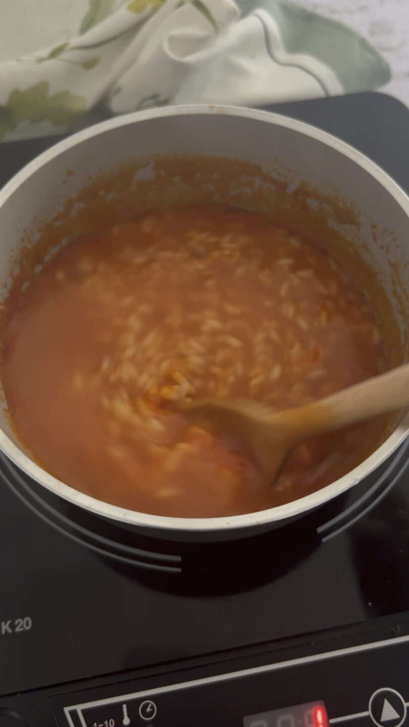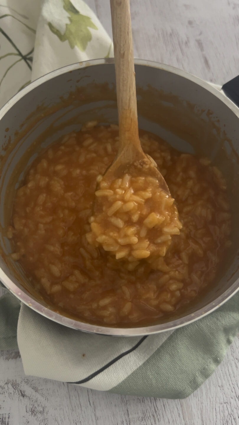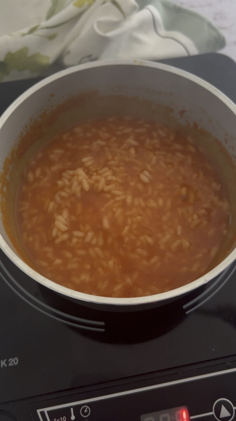 N.B.: Devi cuocere il riso come se fosse un risotto quindi il sugo dovrà restringersi.