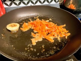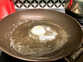 Sciogliete una noce di burro nella padella (15 g). Metteteci quindi mezza cipolla (non a strisce o a pezzetti). Così facendo rilascerà sapore e potrete toglierla in una fase successiva. Mettete la pentola con l’acqua per la pasta a bollire.