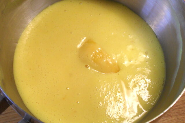 Continua a mescolare fino a che la crema non si sia addensata. Anche se sembra un po’ liquida quando è ancora calda, da fredda tenderà a rassodarsi.