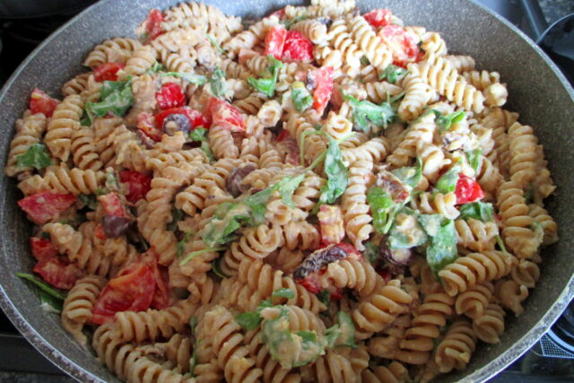 Ed ecco che la nostra pasta con hummus di ceci è pronta per essere servita! E’ anche un bel piatto colorato da portare a tavola no?