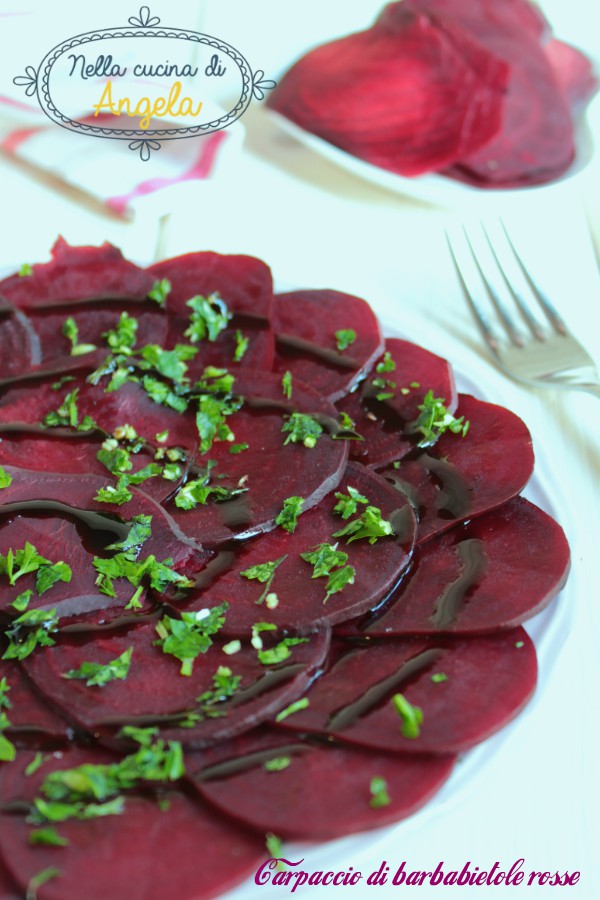 Il Carpaccio di barbabietole rosse è un ottimo contorno fresco e dal sapore delicato, ottimo anche al posto di una buona insalata.