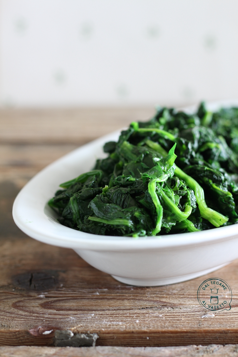 Mettete 500 g di spinaci lavati in una ciotola capace e di vetro, pigiateli e dopo coprite la ciotola con un foglio di pellicola per microonde, facendola aderire bene. Praticate un forellino con uno stuzzicadenti e inserite la ciotola nel microonde. Fate cuocere per 7 minuti a 800 watt. A fine cottura, lasciate riposare per 5 minuti e dopo rimuovete la pellicola.
