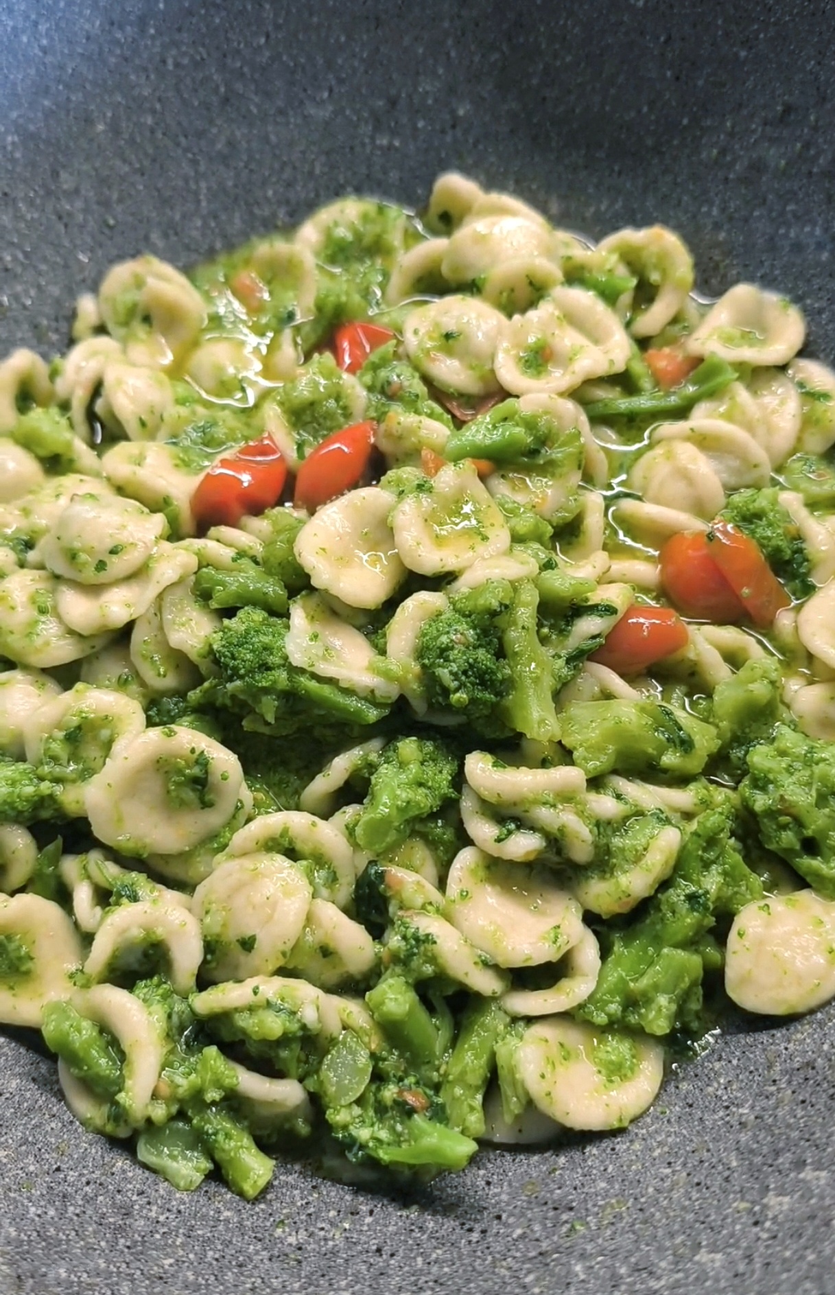 Orecchiette con cime di rapa e pomodorini, un primo piatto davvero molto gustoso.