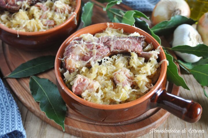I Crauti alla triestina sono un contorno molto gustoso, ricco e nutriente, nel quale viene aggiunta abbondante porcina affumicata e non, per insaporire e dare sostanza al piatto, che diventa praticamente un secondo piatto con contorno. Si può scegliere tra pancetta affumicata, costine affumicate, salsicce di Cragno, salsicce tipo Vienna, ecc… Io in questo caso ho usato pancetta affumicata e costine affumicate.