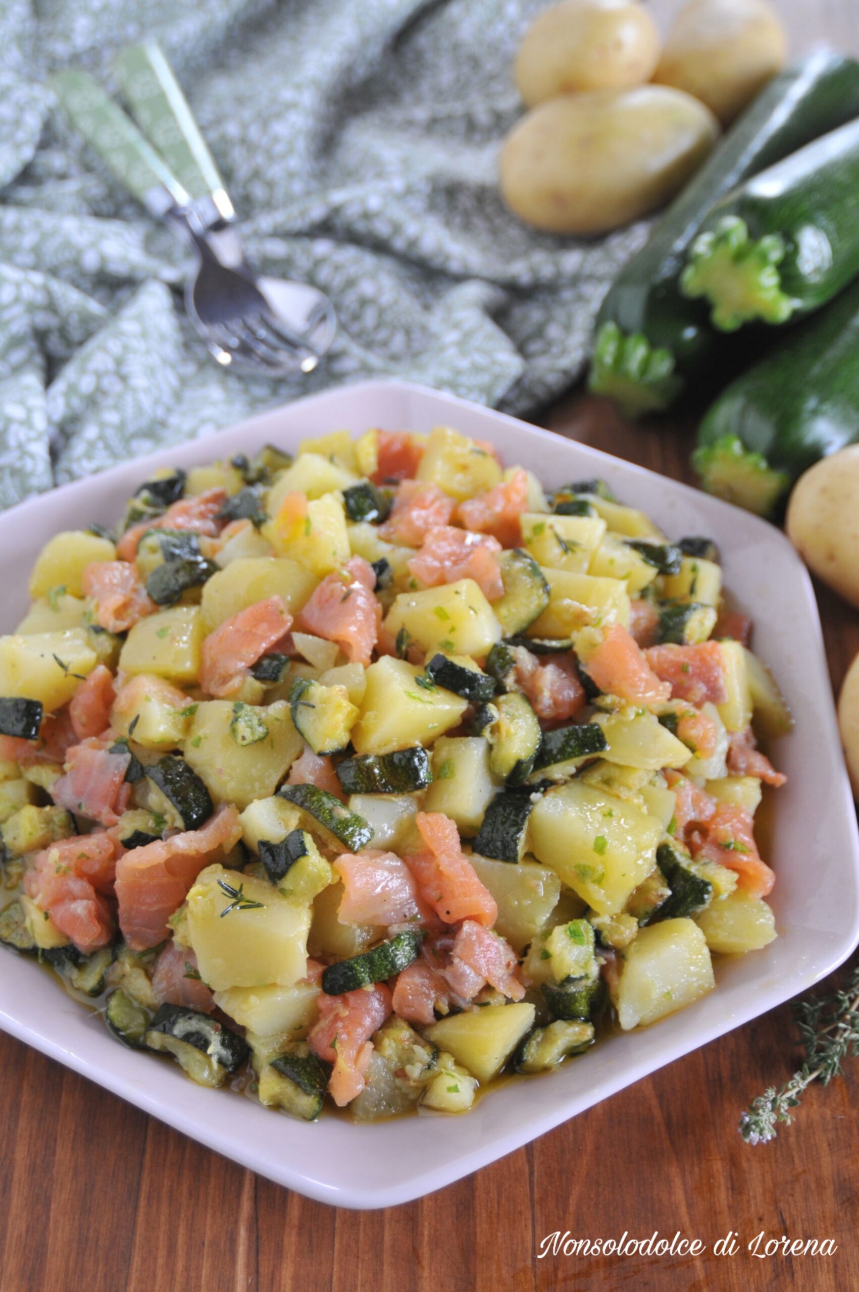 L’insalata di patate con salmone e zucchine è un secondo piatto freddo estivo molto semplice, appetitoso, fresco e facilissimo da preparare. Pochi ingredienti per un piatto nutriente e ricco di gusto.
