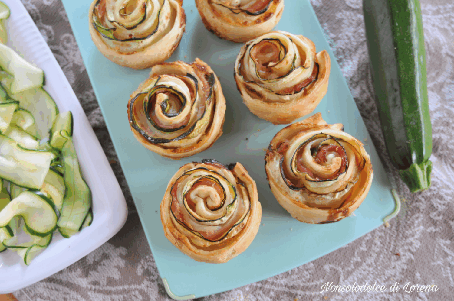 Preparazione delle Rose di sfoglia zucchine e prosciutto