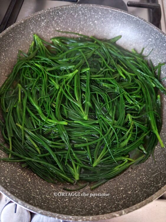 Il sale non serve per condire gli agretti perché crescono naturalmente in terreni salmastri e sono già sapidi di loro.