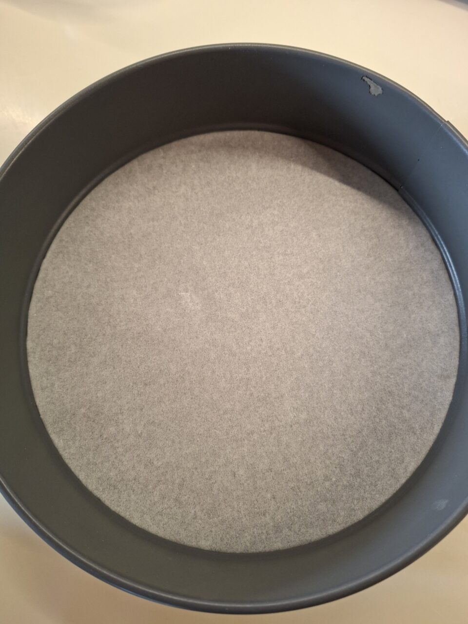 Nel frattempo preparare la tortiera rivestendo il fondo con carta da forno ed imburrare bene i lati.