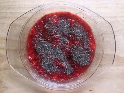 Aggiungere l’acqua, lo zucchero ed i semi di chia.