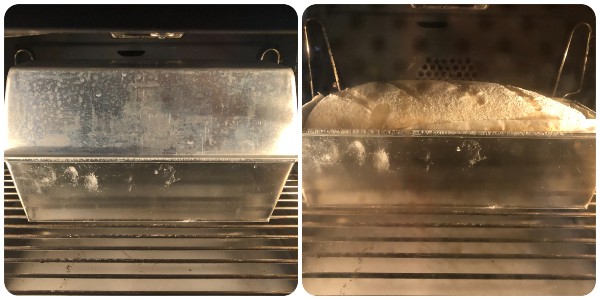 E finalmente cuocere il pane rustico in forno statico preriscaldato a 240° per 15 minuti coperto da un secondo stampo (se non avete un secondo stampo della stessa dimensione usate un foglio di stagnola). Poi eliminare lo stampo superiore e proseguire la cottura per altri 15 minuti alla stessa temperatura. Sfornarlo e lasciarlo intiepidire prima di gustarlo. Enjoy! Paola.