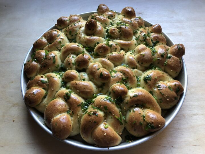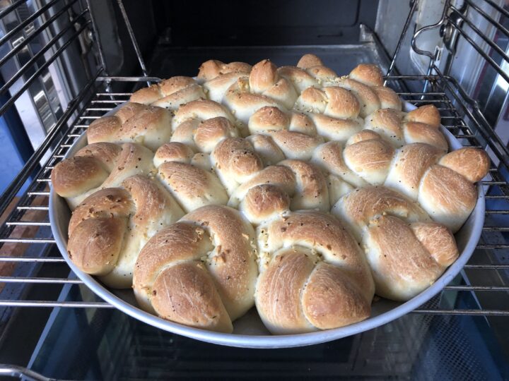 Disporre i nodi all’interno della teglia precedentemente preparata, coprire con un canovaccio pulito e far lievitare per altre due ore.