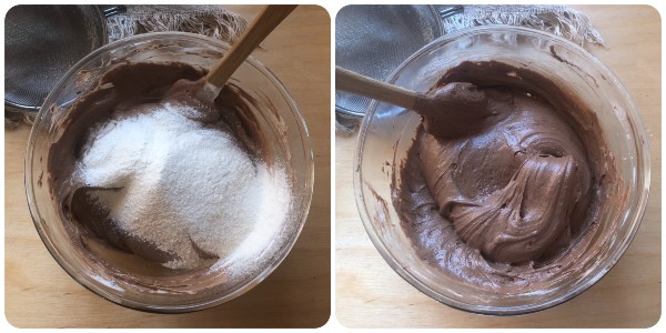 Quindi, unirvi il composto di cioccolato e burro ormai tiepido e amalgamarlo perfettamente sempre lavorando con le fruste.