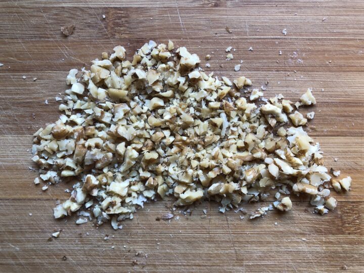 Con un coltello tritare grossolanamente le noci.
