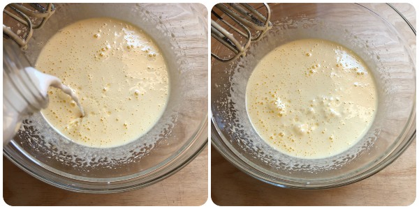 Quindi unire il latte e l’olio e mescolare di nuovo con le fruste.