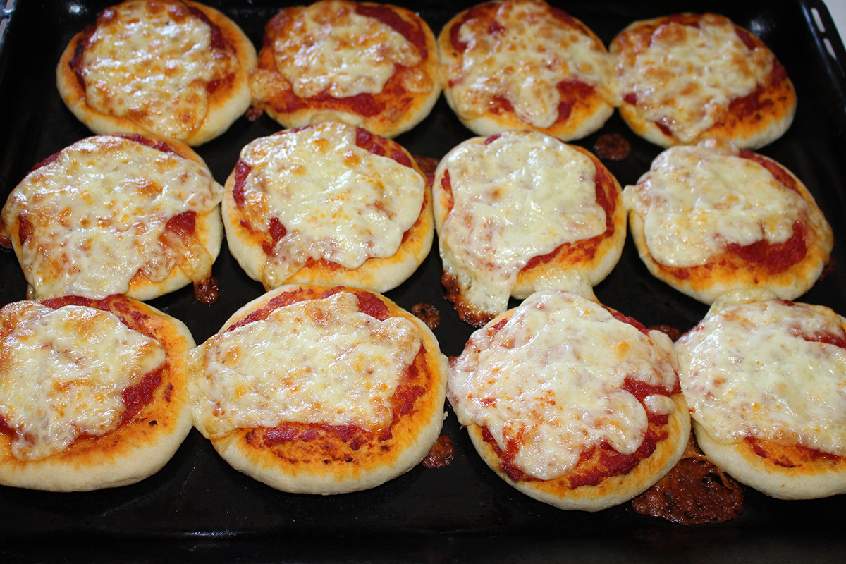 Mano a mano che preparate le pizzette, adagiatele su una teglia da forno precedentemente unta.