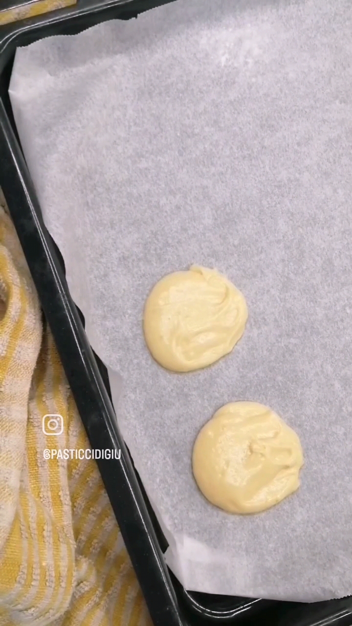 Foderare una teglia con carta forno e con l’aiuto di due cucchiai cominciare ad adagiare l’impasto creando dei piccoli mucchietti.