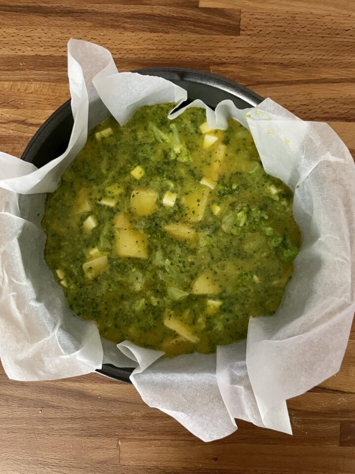 Mettete in forno ventilato a 180-190° e fate cuocere la frittata per circa 25 minuti, o comunque finché la superficie sarà leggermente dorata.