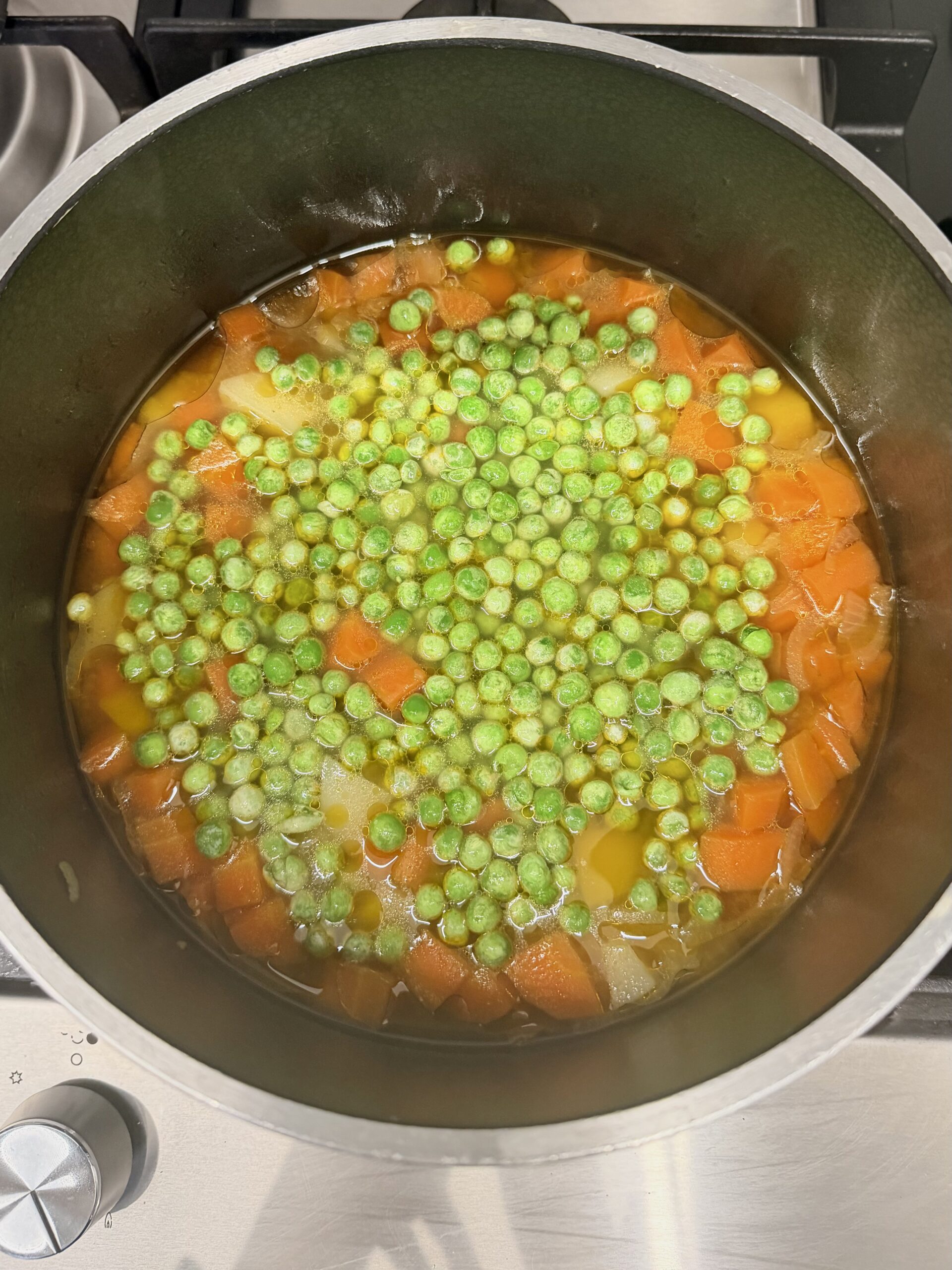 La minestra di piselli, carote e patate è pronta… buon appetito!