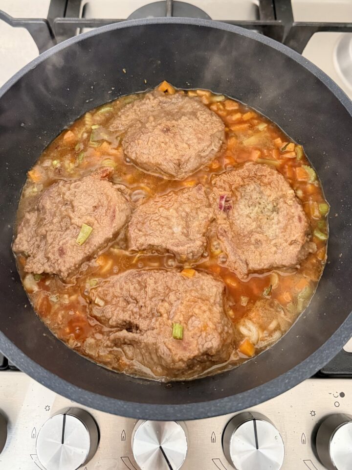 I piselli aggiungono una nota delicata e leggermente dolce, creando un equilibrio perfetto con il sapore intenso dell’umido. È una ricetta semplice, fatta di pochi passaggi e ingredienti genuini, ma capace di regalare grande soddisfazione a tavola.
