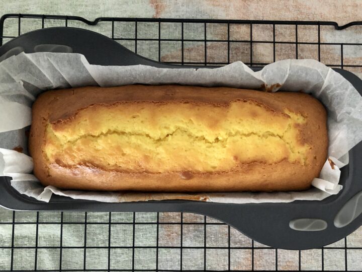 Mettete il dolce in forno statico a 180° e fate cuocere per 35 minuti circa, verificando con uno stecchino che il plumcake sia asciutto al centro (2).