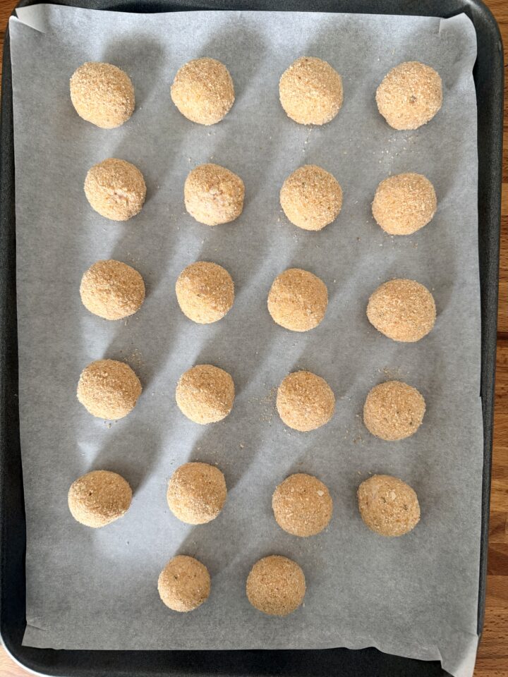 Amalgamate tutti gli ingredienti fino ad ottenere un impasto morbido ma compatto. Con le mani, formate delle palline e passatele nel pangrattato.