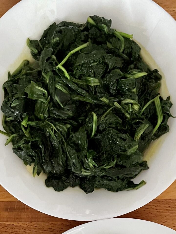 Per ottenere i 90 g richiesti, ti occorreranno circa 180-200 g di spinaci freschi puliti. Ti basterà cuocerli a vapore o direttamente in padella, poi dovrai raffreddarli e strizzarli bene per eliminare l’acqua in eccesso.