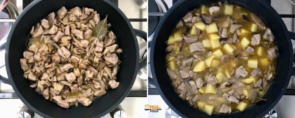 Aggiungetele al resto degli ingredienti e versate altro brodo se necessario. Fate cuocere a fiamma medio-bassa per 40-50 minuti, o comunque finché la carne sarà tenera e le patate ben cotte.