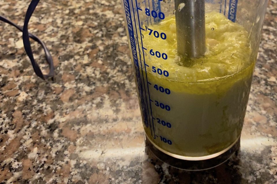 L’aglione che viene frullato con l’olio