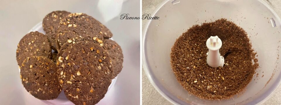 Con l’aiuto di un mixer, tritiamo finemente i biscotti.