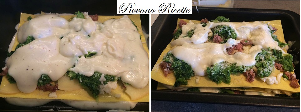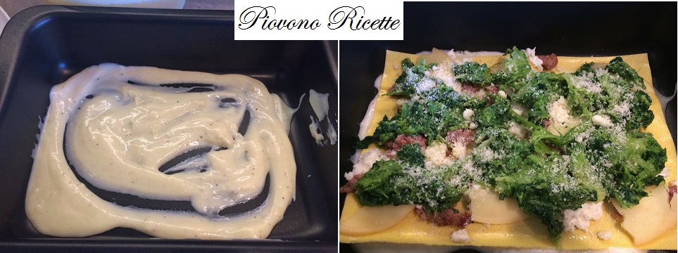 Iniziamo la preparazione delle lasagne con cime di rapa, scamorza affumicata e salsiccia.