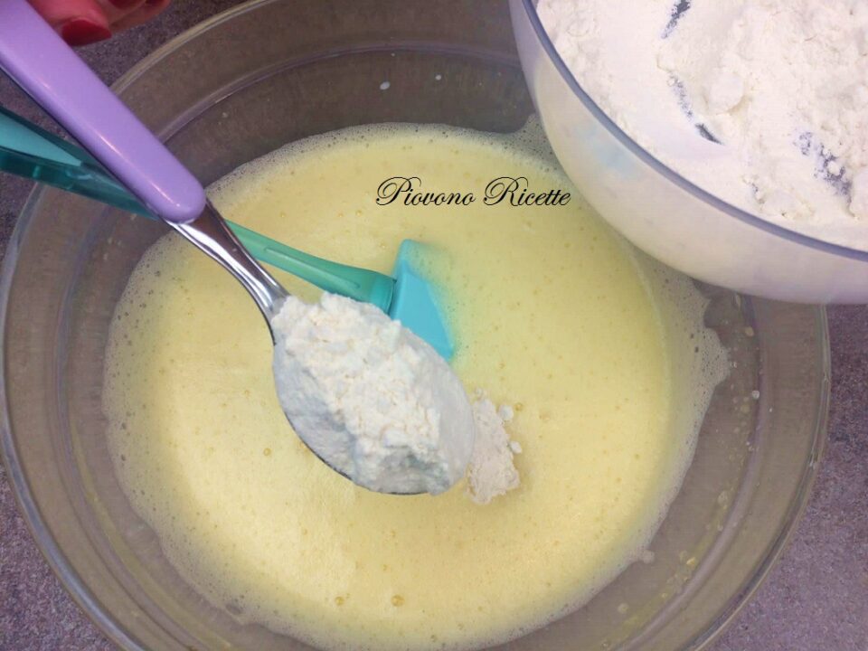Una volta aggiunta tutta la farina (dovrà essere perfettamente incorporata al composto) uniamo la fecola di patate ed il lievito (sempre setacciandoli)