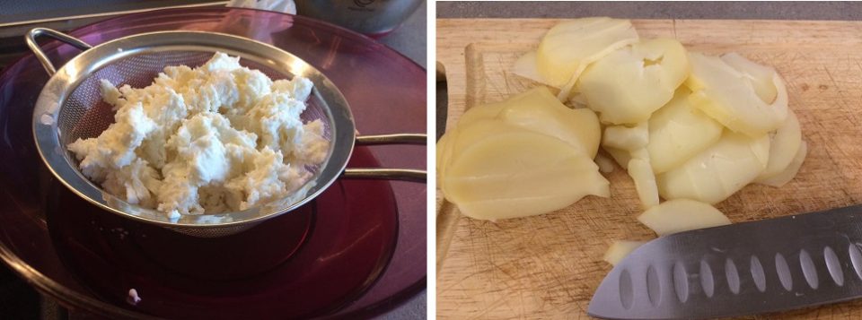 Tagliamo la scamorza a fettine sottili o a piccoli pezzetti.