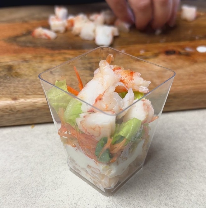La stessa insalata la utilizzeremo anche per i bicchierini con i gamberi.