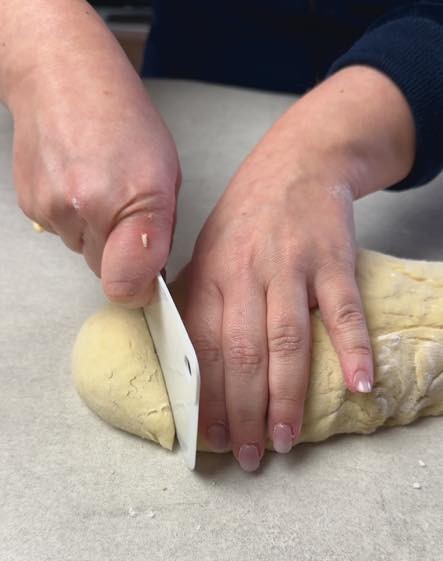 Trascorso il tempo necessario rilavoriamo l’impasto con un po’ di farina.