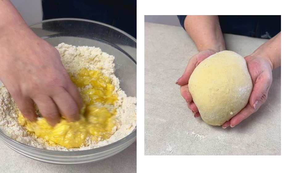 Amalgamiamole e formiamo una fossetta al centro.