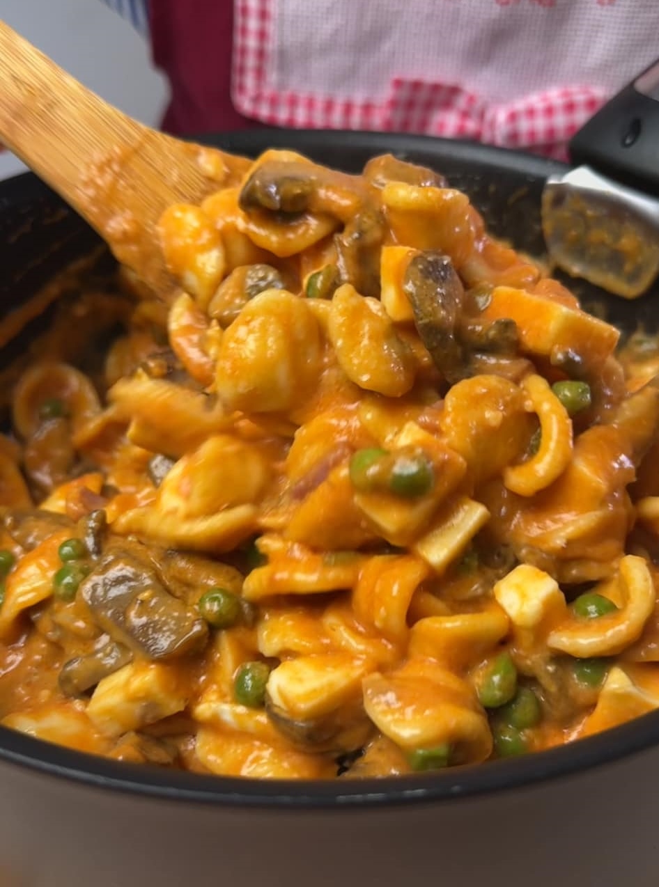 Gustosa, ricca, saporita, filante, sarà una vera esplosione di sapori. Ci sarà l’incontro perfetto tra speck, funghi e piselli (che sembrano un pò un’intruso ma ci stanno benissimo) ed il tutto sarà abbracciato da un cremoso sugo di pomodoro e dalla mozzarella.