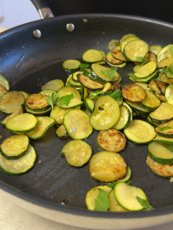 A fine cottura insaporiamole con un pizzico di sale ed abbondante menta spezzettata con le mani.