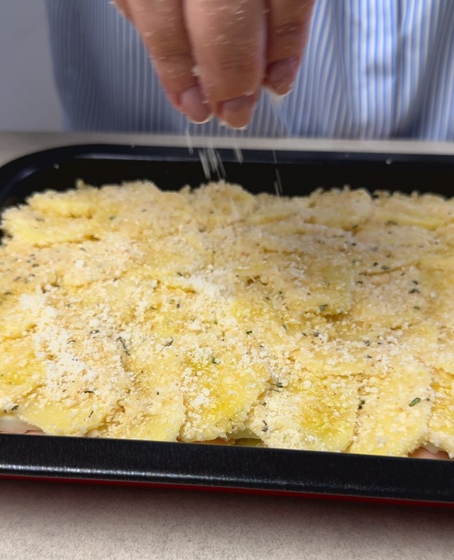 Ricopriamo con il secondo strato di patate (sempre leggermente sovrapposte).