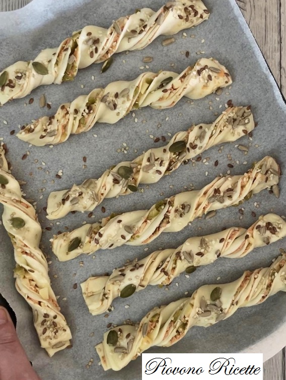 Questi torciglioni di sfoglia saranno la ricetta perfetta per arricchire un tagliere di salumi e formaggi.