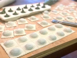 Mettere i ravioli distanziati tra loro e ben infarinati su vassoi o sulla spianatoia.