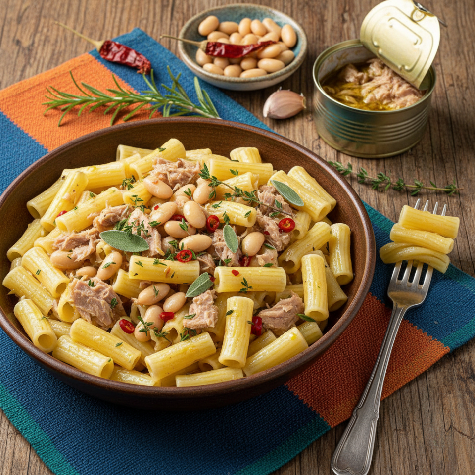 Questa pasta con tonno e cannellini è un primo piatto semplice e veloce della cucina mediterranea, perfetto quando si vogliono preparare ricette gustose con pochi ingredienti di dispensa.