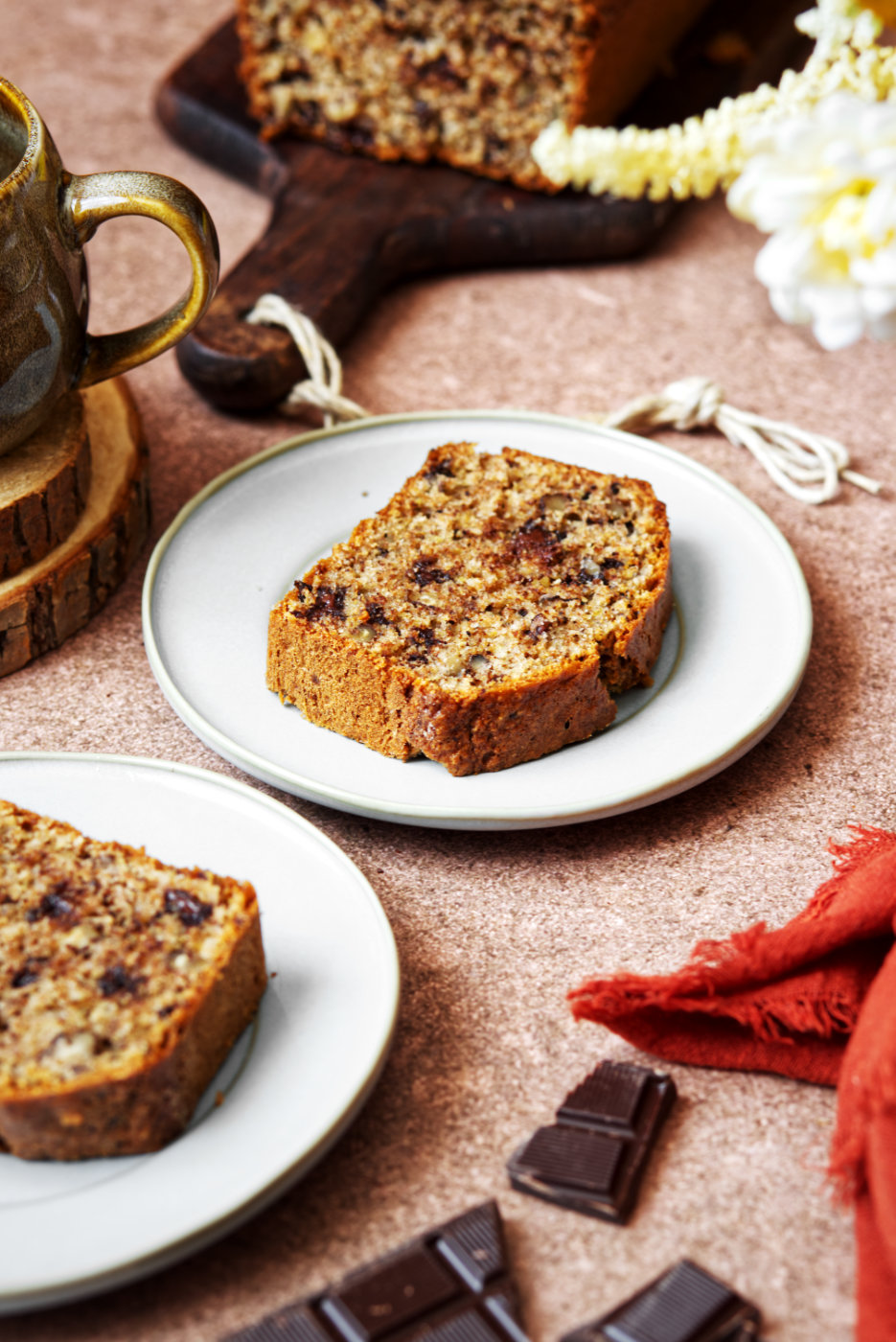 Il plumcake integrale con noci e cioccolato si conserva a temperatura ambiente per diversi giorni ben coperto con una campana per torte.