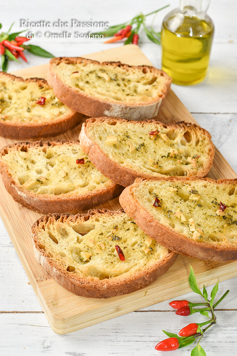Crostini all’aglio, una ricetta veloce per riciclare il pane che avanza, perfetti per un aperitivo, per un antipasto, magari con creme e patè spalmati sopra una volta pronti, ma ottimi anche per accompagnare zuppe e minestre, non solo di verdure, ma anche con pesce o carne, come uno spezzatino di manzo, o una impepata di cozze. Sono velocissimi da preparare e gli ingredienti ce li abbiamo tutti in casa, olio d’oliva, aglio… dai vediamo come si fanno i crostini all’aglio che ne ho già voglia. Se vuoi ricevere le mie ricette seguimi anche sulla fan page FACEBOOK, sugli altri social e sul mio canale Youtube Ornella Scofano dove trovi tutte le video ricette.